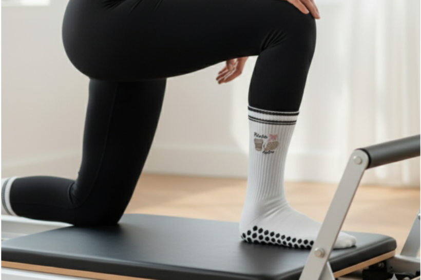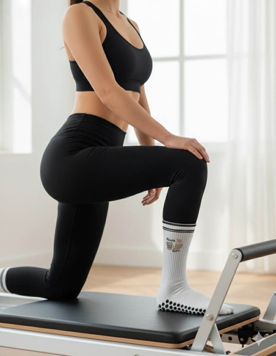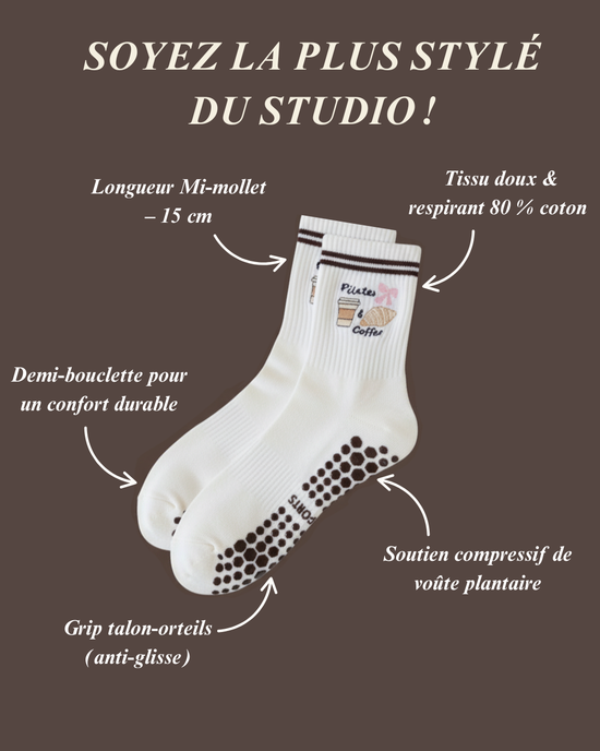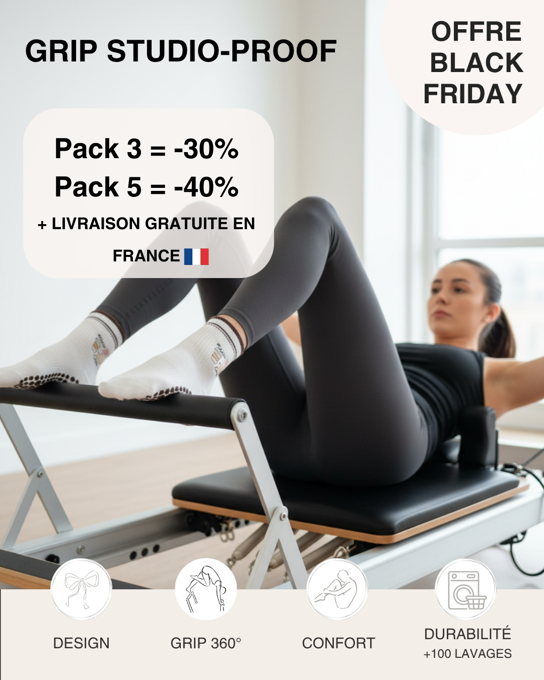Pensées sur le tapis et testées en studio, nos Chaussettes Grip Studio offrent une tenue régulière sur reformer et tapis, avec une maille douce qui accompagne le mouvement sans distraire.