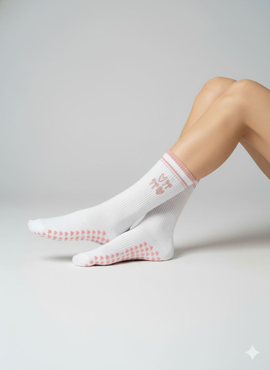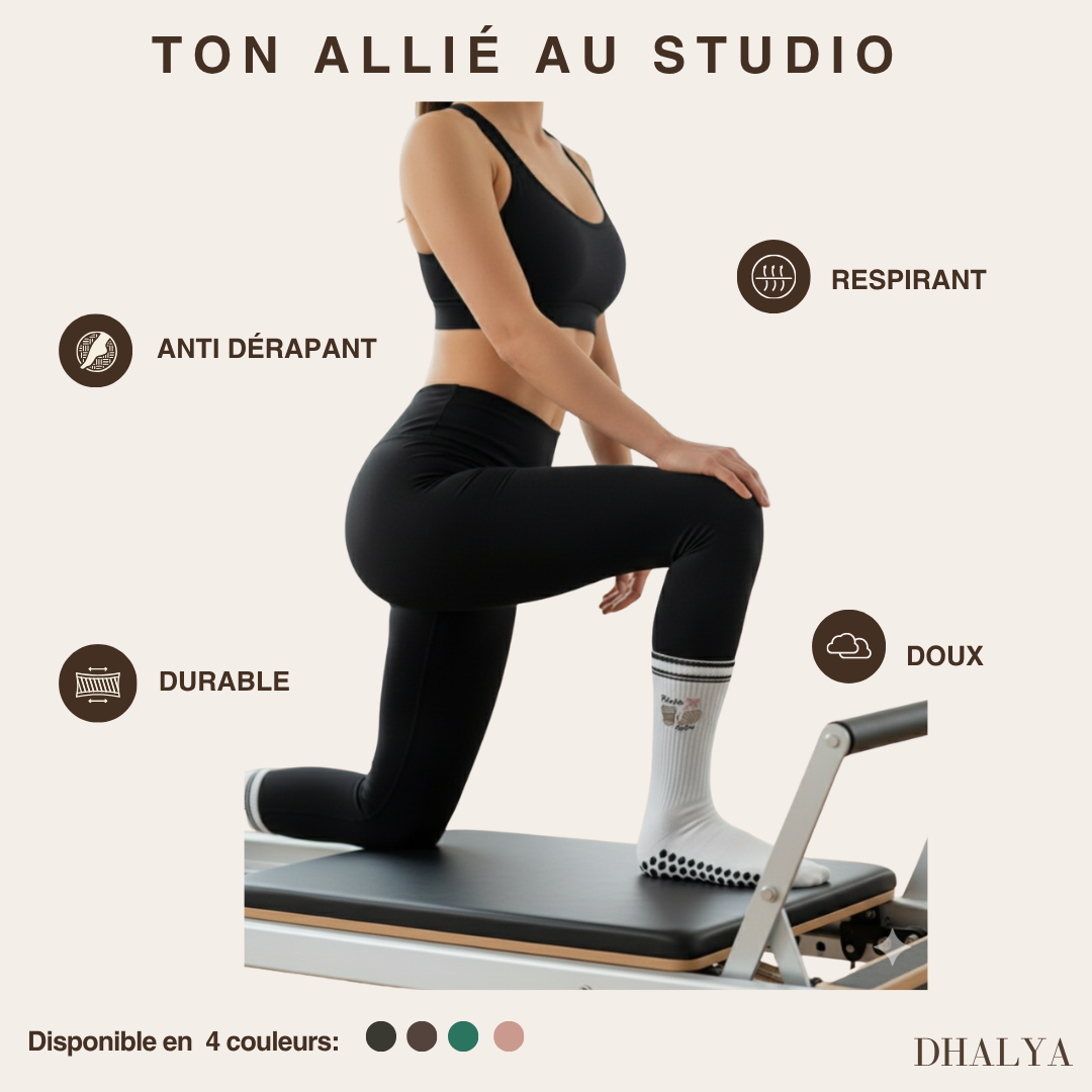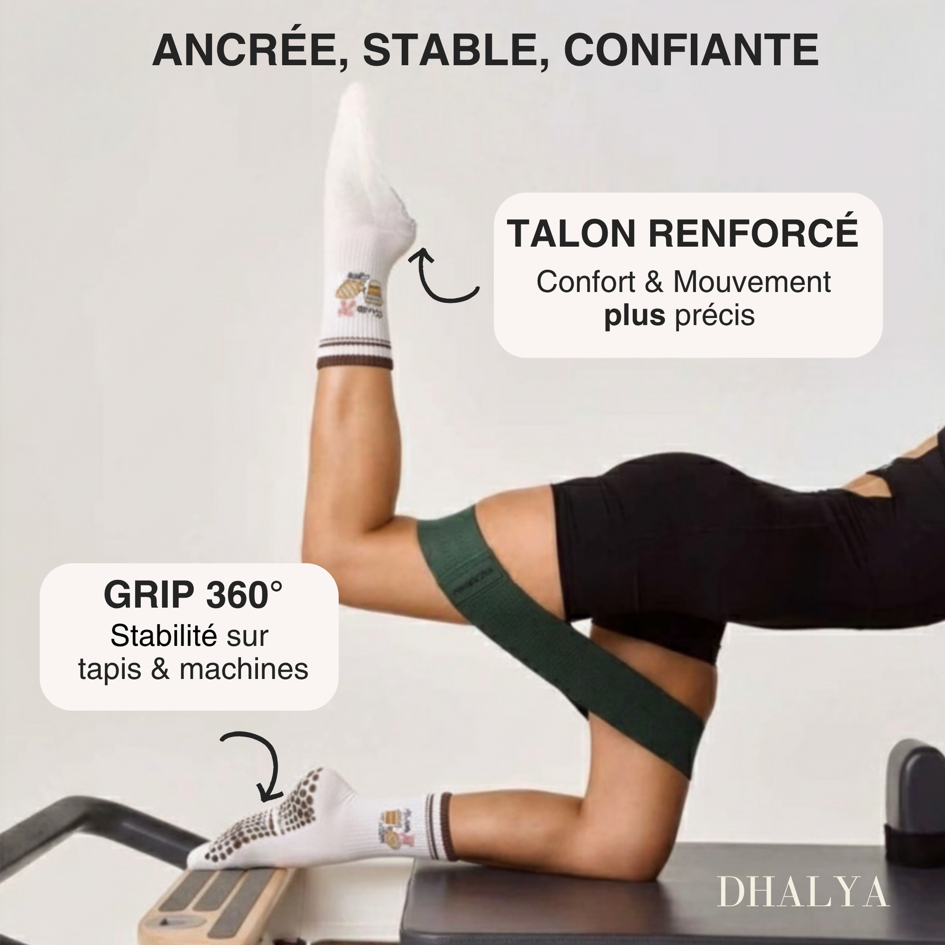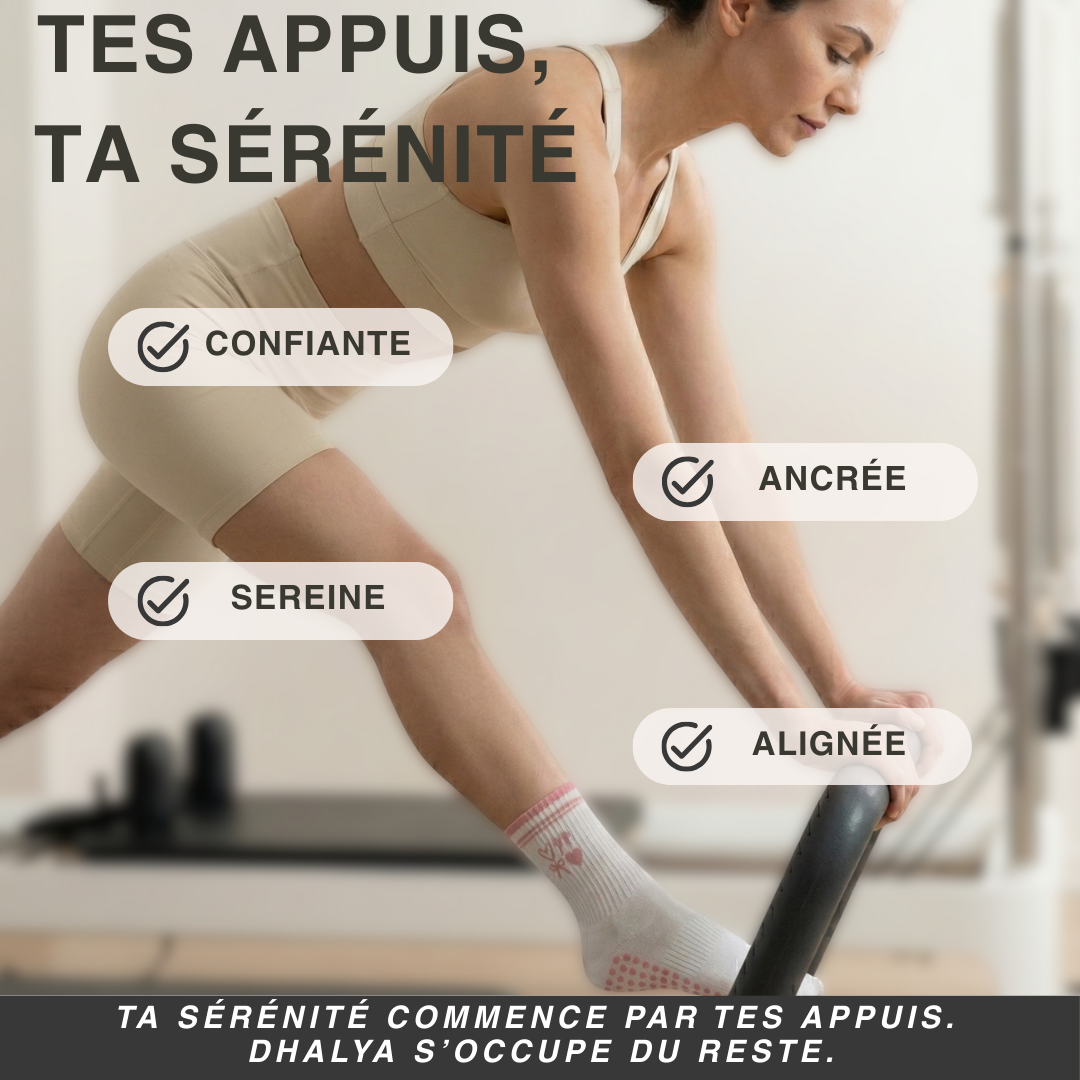 Dhalya est née sur un tapis, entre deux enchaînements où tout compte : l’appui, le souffle, le calme. Nous ne trouvions pas de chaussettes qui allient vraiment stabilité studio et esthétique soignée — alors nous avons créé les nôtres. Des modèles pensés à Paris, testés avec des instructrices, au grip dense ...